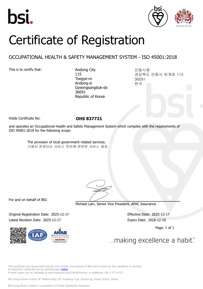 안동시 안전보건경영시스템(ISO 45001)
